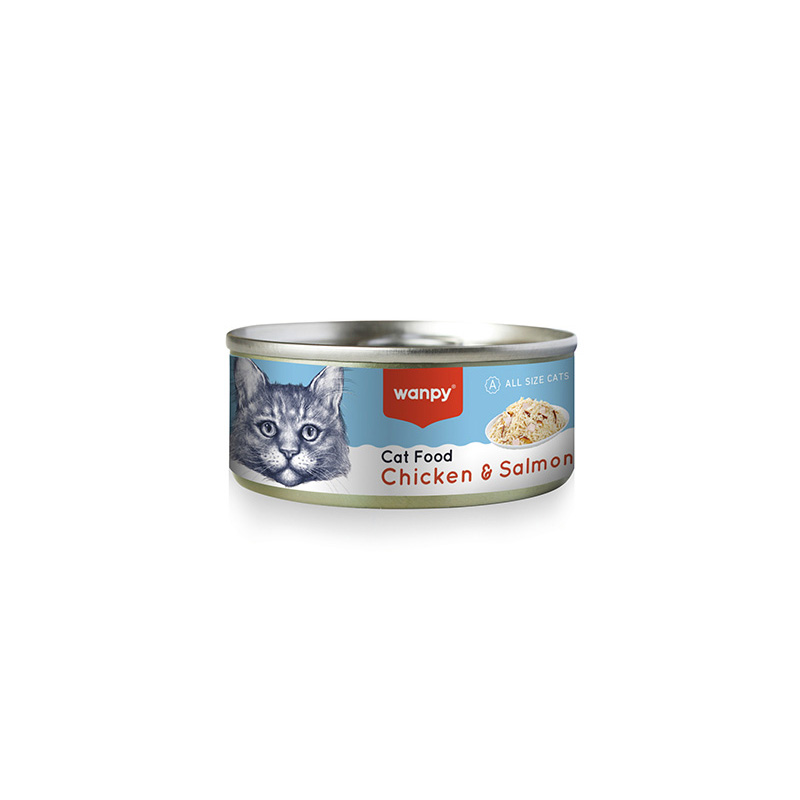 کنسرو تکه های مرغ و سالمون ونپی 95 گرمی wanpy